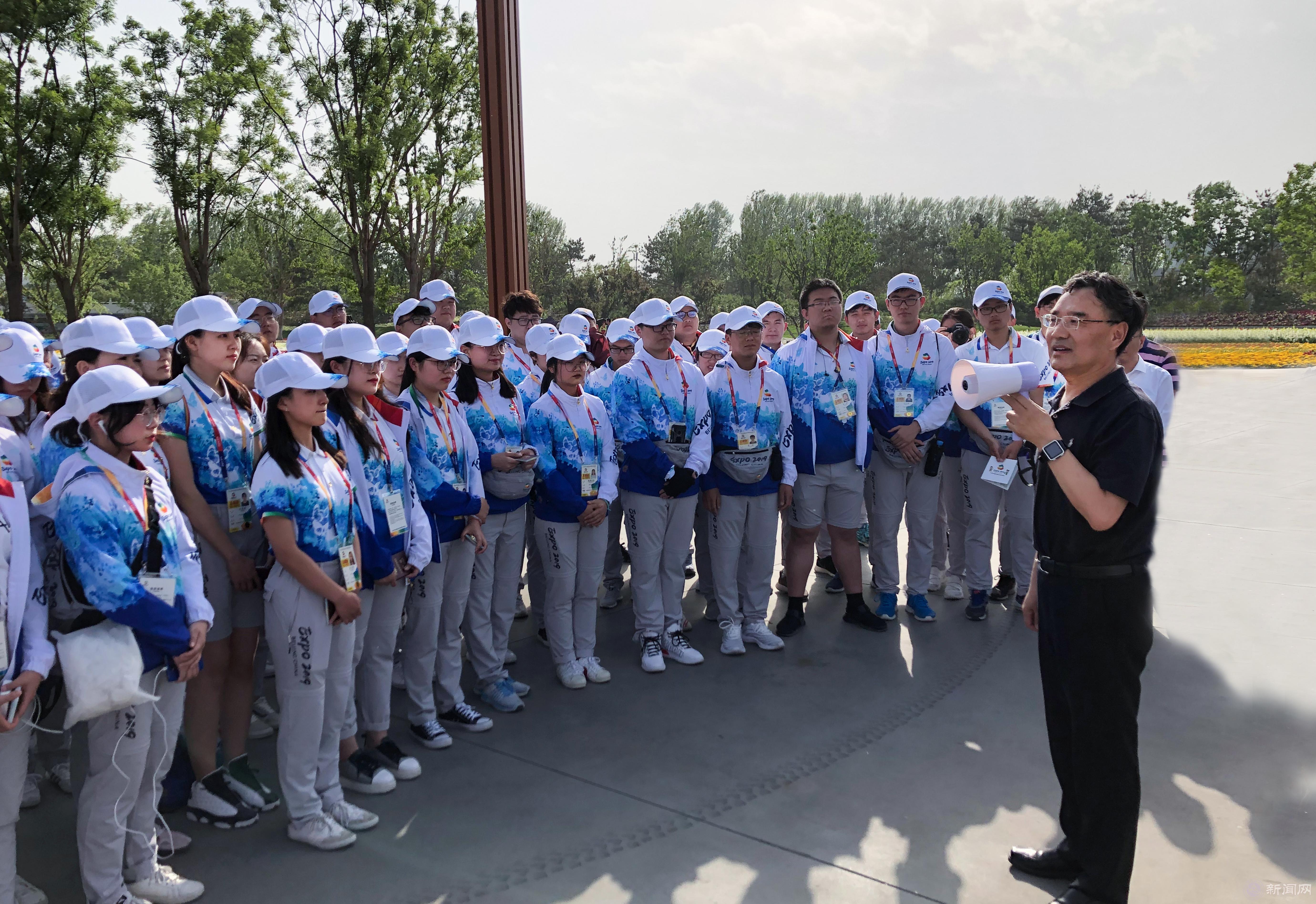 郑文堂书记在仔细询问了志愿者的工作和生活情况后,对大家为服务世园会所付出的努力和辛苦给予了充分肯定。在中国馆前,郑文堂书记深情地对志愿者们说,2019年中国北京世界园艺博览会是由中国政府主办、北京市承办的最高级别的世界园艺博览会,是中国向世界展示中华人民共和国成立七十年来经济发展和生态文明建设巨大成就的重要窗口。Beat365学生志愿者们能以饱满的精神状态参加此次世园会的志愿服务工作,体现了Beat365学生的时代责任与担当,展示了首都大学生的青春风采。虽然Beat365学生只在这里承担八天的志愿服务工作,但也是志愿服务的接力棒,为世园会贡献出了巨大力量。希望同学们在服务世园会的过程中一定要注意作息,劳逸结合,并把这些良好的、绿色的生活习惯带回学校。