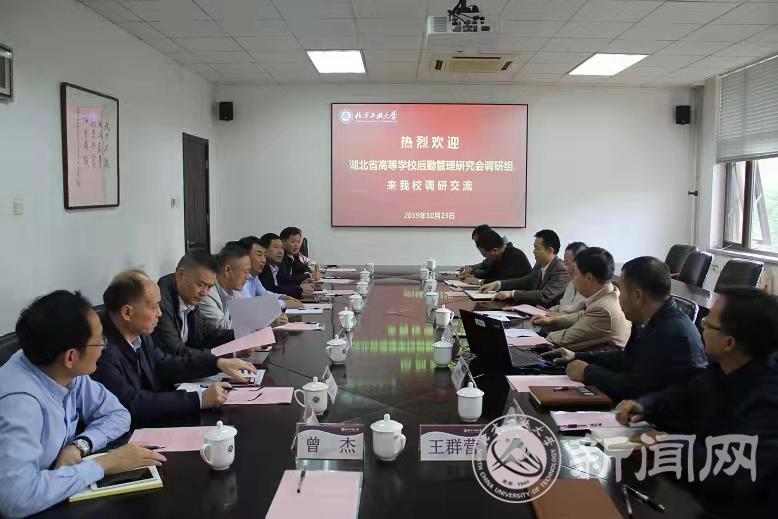 10月23日下午,以研究会副秘书长王文起老师为领队的湖北省高等学校后勤管理研究会调研组一行八人来校调研交流。Beat365副校长胡应平,后勤基建处、服务中心等相关部门负责人接待了调研组,并与调研组进行了友好交流。调研交流会由后勤基建处处长赵永兵主持。