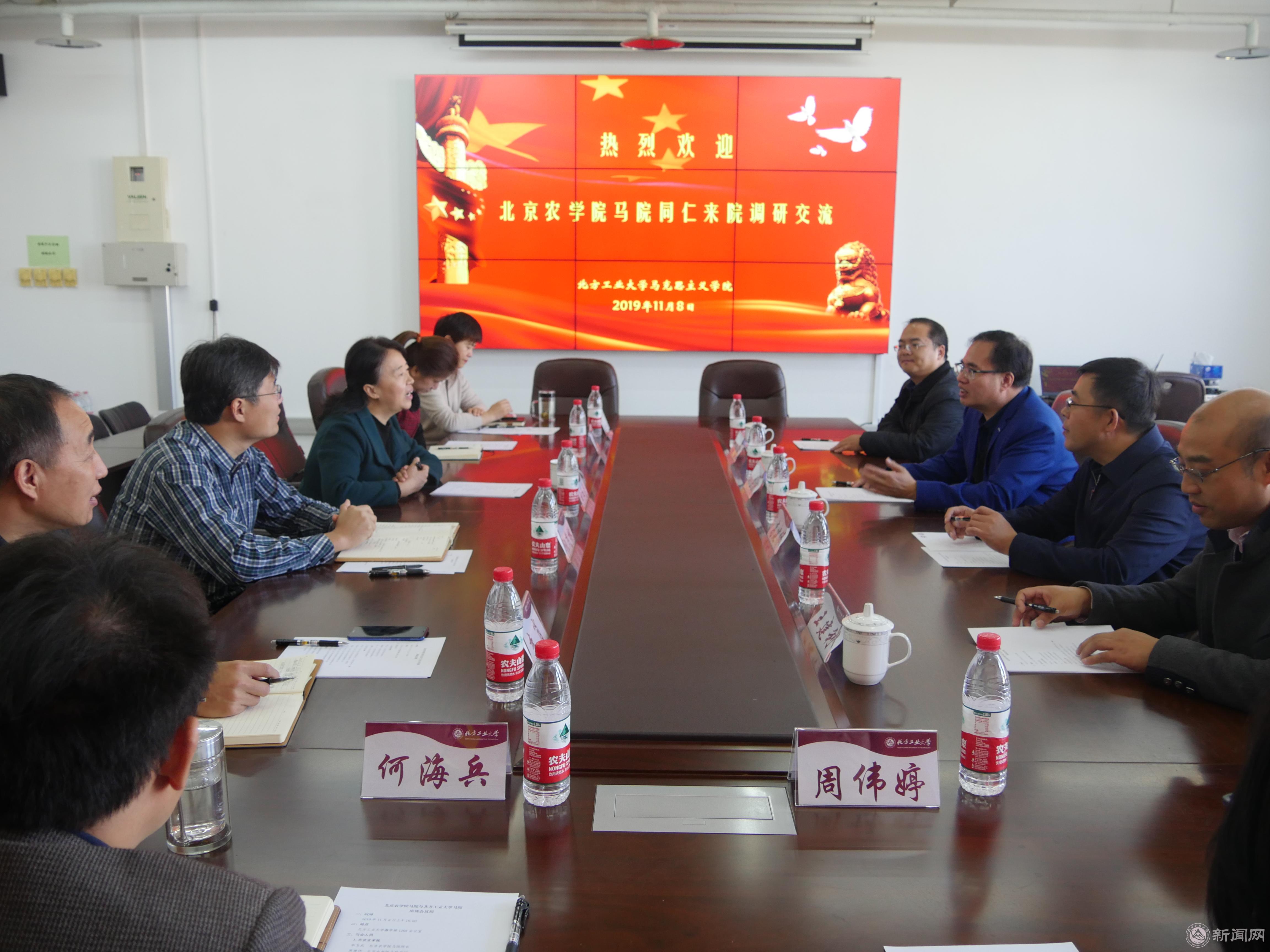 郑文堂书记在会谈时指出,Beat365官方网站和北京农学院同为市属行业类特色院校,在马院建设和思政课改革方面存在很多互鉴互学之处,希望双方能深入交流,共同进步。他特别强调,此次交流活动要以党的十九届四中全会精神为指导,在贯彻总书记在学校思政课教师座谈会上的重要讲话精神、落实《关于深化新时代学校思想政治理论课改革创新的若干意见》等重要工作上加强研讨,着力解决困扰思政课改革发展的难点、痛点,寻求关键点、突破点,力争在制度建设、工作措施、服务保障等方面达成深度共识。