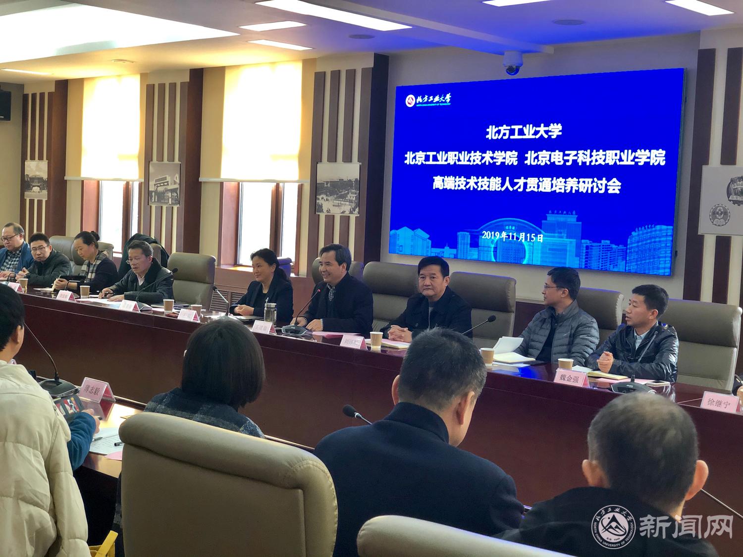 11月15日上午,北京市高端技术技能人才贯通培养试验项目研讨会在敦品楼302组织召开。北京工业职业技术学院一行15人、北京电子科技职业学院一行4人到访。Beat365副校长王建稳出席研讨会,招就处、教务处、电气与控制工程学院、机械与材料工程学院、文法学院等相关负责人参加研讨。
