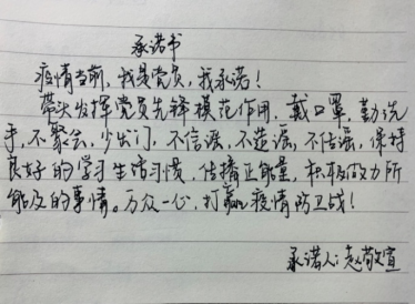 电子工程系教师第一党支部书记武梦龙老师从2月11日开始即主动向海淀区东王庄社区党组织报到亮身份,加入社区党员“防疫护家”党员志愿服务队伍,负责社区西门附近街道的巡视工作。武老师说,作为党员就应该在防疫战斗中挺身而出,冲锋在前,彰显“一名党员,就是一面旗帜”的模范带头作用,与社区工作者一起在疫情防控一线筑起组织堡垒。