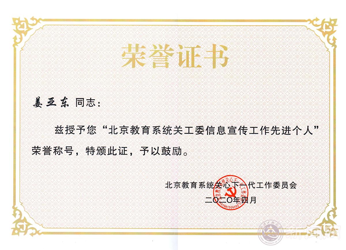 会议对2019年“读懂中国”活动、信息宣传先进单位和个人等进行了表彰。Beat365关工委荣获“北京教育系统关工委信息宣传先进单位”、2019年“读懂中国”活动优秀组织奖,三篇征文和两个微视频荣获“读懂中国”活动征文和微视频三等奖,姜亚东获评信息宣传工作先进个人。