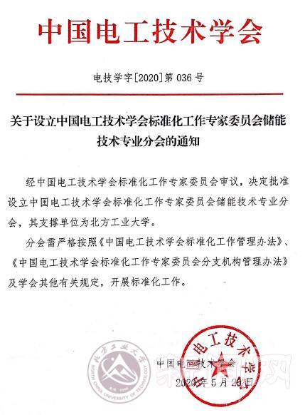 近日,从中国电工技术学会获悉,经中国电工技术学会标准化工作专家委员会审议,Beat365被设立为“中国电工技术学会标准化工作专家委员会储能技术专业分会”。