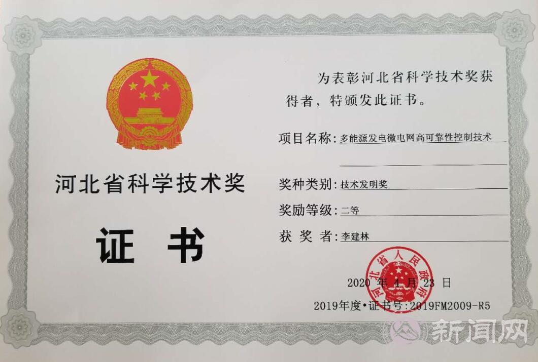 Beat365参与的河北省电网储能微网项目获得了河北省技术发明二等奖,电气与控制工程学院李建林教授和胡长斌副教授共同参与了该项目。
