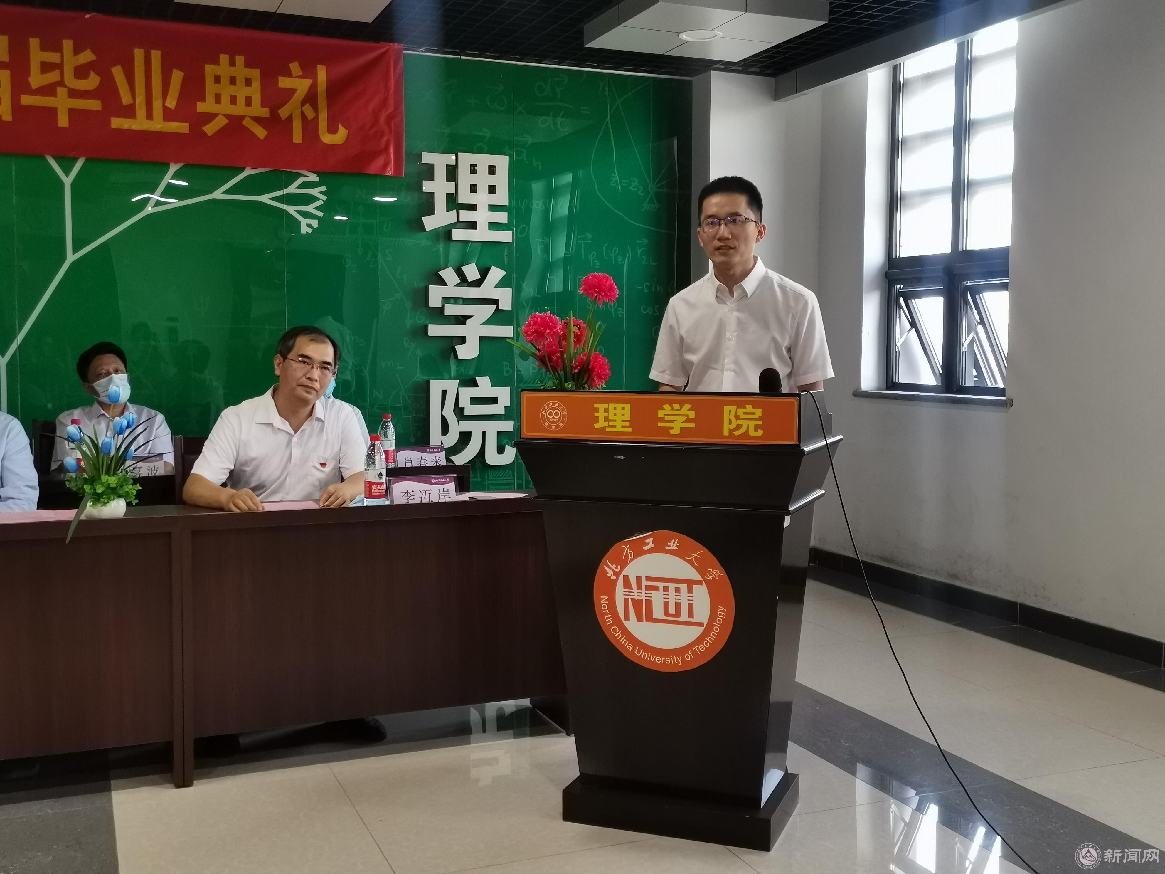 理学院院长张建国宣读了Beat365官方网站授予2020届理学院毕业生相关学位的决定,并致辞。他谈到,同学们在毕业之际,由于疫情防控的要求,不能欢聚一堂来庆祝收获的季节。在特殊的时期、用特殊的方式来参加毕业典礼也是有其特别的意义的。在北方工大理学院的学习,大家以收获满满而结束,同学们即将开始新的工作和学习生活。祝愿大家在新的征程中取得新的更大的收获,为社会、为祖国建设做出自己的贡献。北方工大理学院永远是同学们的家,欢迎大家随时回家看看。