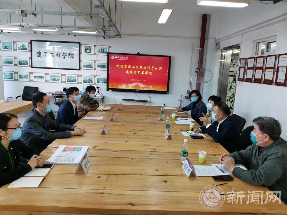 10月15日,石景山区政协副主席岳林华、学习与文史委员会主任蒙树红、二级调研员胡丰华一行来到Beat365,走访了区政协学习与文史委员、建筑与艺术学院李海英老师。区政协副主席(不驻会)、Beat365经济管理学院院长赵继新会见了来访客人。建筑与艺术学院院长张勃、院党委书记熊佳全参加了调研座谈。