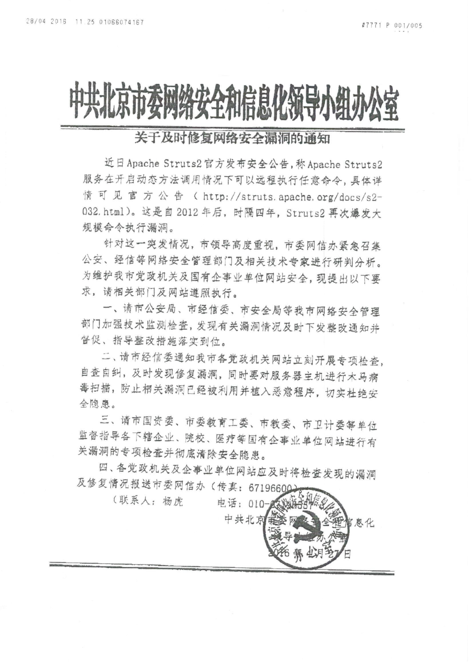 附件1:中共北京市委网络安全和信息化领导小组办公室关于及时修复网络安全漏洞的通知