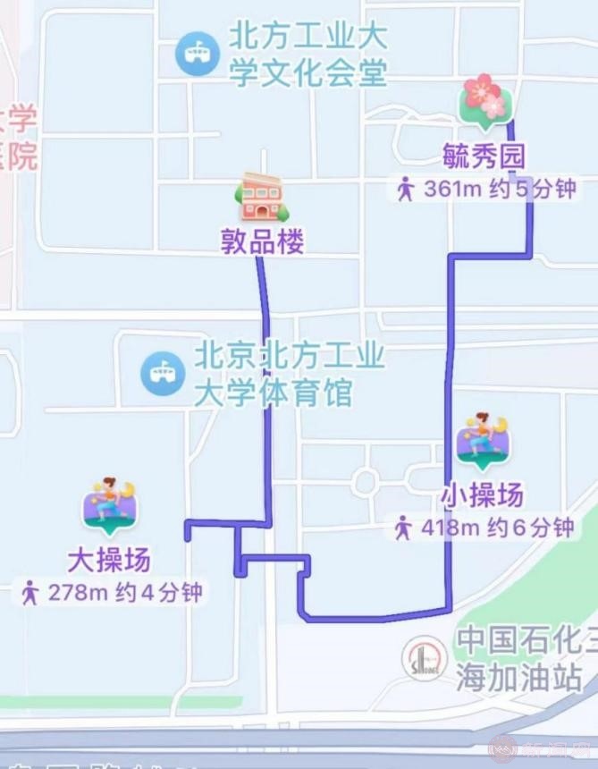1.从敦品楼(起点)点位扫码登记出发,依次前往大操场、小操场、毓秀园(终点)点位进行扫码打卡。