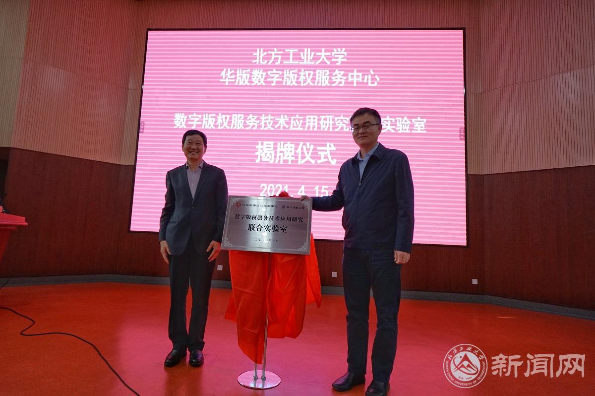 随后,韩飞副处长和白志军副董事长共同为“数字版权服务技术应用研究联合实验室”揭牌。
