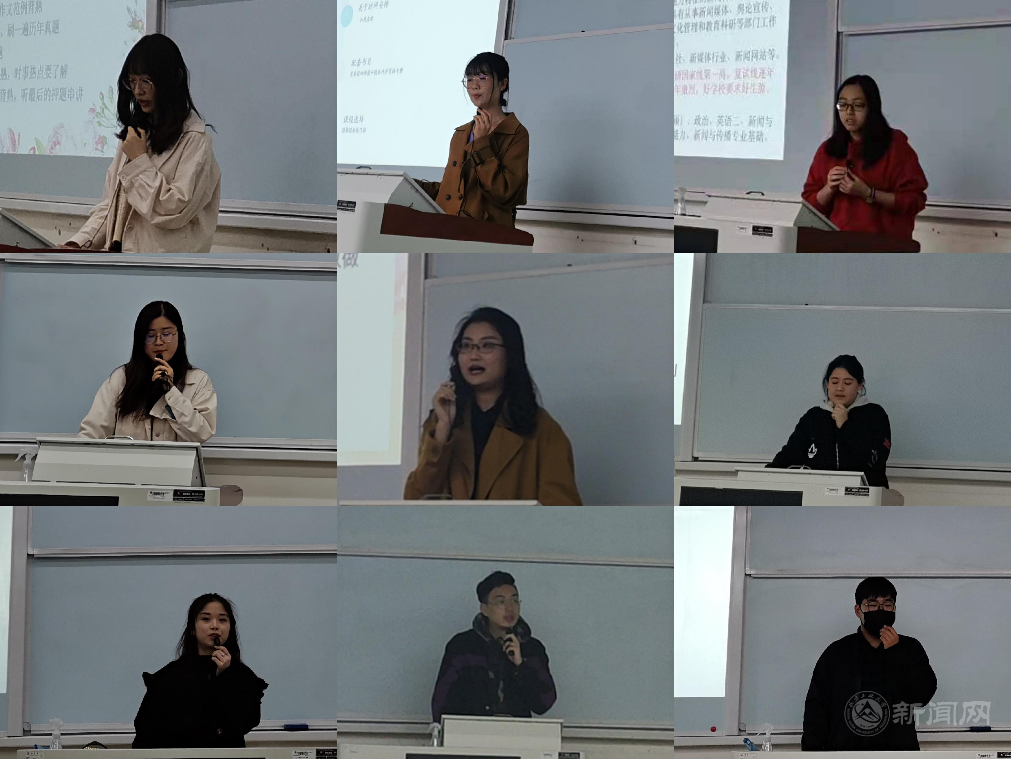 来自文法学院5个不同专业的12名“学霸”结合自己的亲身经历,从为什么要考研、如何选择考研学校与专业、怎么进行科学复习等一系列学生关心的问题为大家进行了详细的分析与解答,鼓励大家早准备、早行动、早确定适合自己的、切实可行的目标并为之持续努力。他们也曾有过对专业选择的迷茫,也曾有过艰苦奋斗的形单影只;也曾有过学不进去时的不知所措。但是现在,他们站在梦想的终点回首,往日的艰辛终将化为脸上成功的笑容与骄傲。此次考研动员系列活动内容丰富多彩,既涵盖本校与外校的本专业考研,也包含外校的跨专业考研,更分享了来自欧美和日本不同国家名校的申请经验。现场同学纷纷就自己关心的问题与优秀学长学姐进行交流互动,气氛热烈。