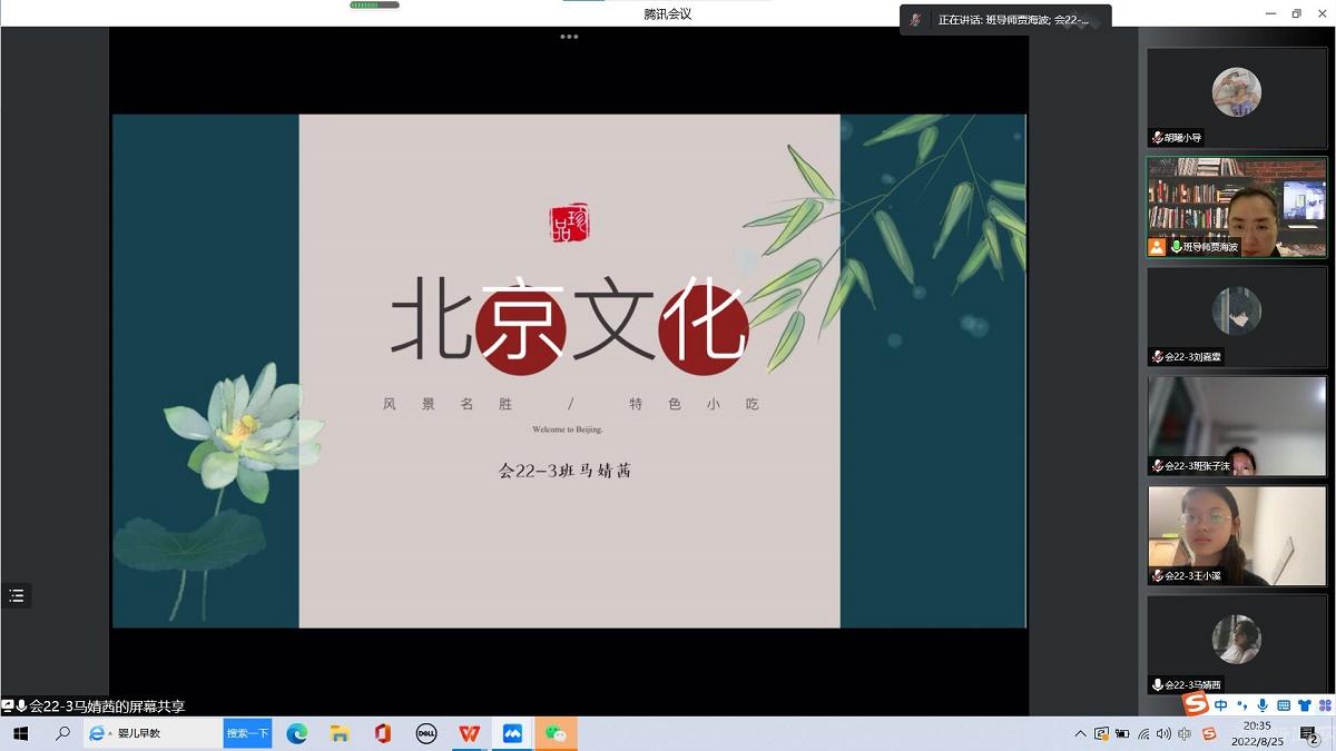 在线上主题交流活动中,同学们围绕“我心中的北京和大学”进行交流。京外同学分享了入校的心情和感受,畅谈对学校和北京的认识,京内同学介绍了北京的风景名胜和特色小吃等。在交流过程中,同学们增进了彼此之间的了解,提升了感情。随后,班导师、小辅导员对大学的学习生活和校园环境进行了初步介绍,对每名学生给予温情关怀,让新生充分感受到了亲切和温暖。