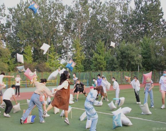 有“信”相遇,“新”心相息,师生趣味拓展团建共度佳节。假期期间,学院团委在学校小操场举办中秋趣味团建活动,精心设计了“挑战指压板”、“快乐飞盘”、“牵手呼啦圈”、“枕头大作战”、“共画同心圆”等环节,还准备了充满惊喜的盲盒,师生共乐过佳节。广大师生积极参与其中,跳指压板、接飞盘、转呼啦圈、扔枕头、开盲盒……现场气氛紧张热烈又趣味十足,展现了一幅节日温馨祥和、团结一心、积极奋进的良好风貌。