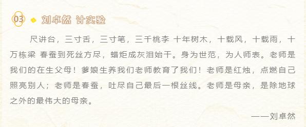 语短情长,师恩难忘,节日祝福献给最亲爱的老师。九月的丹桂芳香四溢,是因为有了园丁的悉心栽培;桂下的学子茁壮成长,是因为有了老师的用心塑造。饮水思源,感恩长存,鲜花表意,行动传情。信息学院学子通过撰写祝福语、手绘贺卡、录制短视频等形式对老师感恩之情,用最真诚的方式,将节日的祝福献给最亲爱的老师。他们也将铭记老师的教诲,在学习生活中奋勇拼搏,锐意开拓,用优异的表现来回报老师们的辛勤付出!