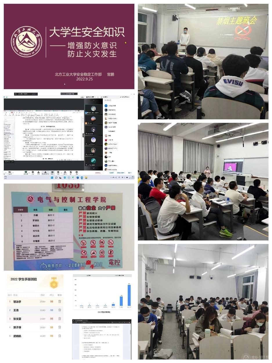 内化于心,外化于行。学院扎实推进优良学风建设,以遵守校纪校规为重点,着力培育学生将校规校纪内化于心、外化于行。在本科新生中加强晚自习、宿风制度建设,组织开展学手册、知规范,主动防范电信诈骗、积极履行社会责任以及控烟宣传等主题班会,并进行《学生手册》、实验室安全准入考试;在研究生中进行了消防安全培训及防范诈骗安全教育讲座。为督促学生管理好自己的日常生活,学院学工办每周二都会开展深入宿舍并邀请宿管、退伍士兵给予新生内务整理指导,着力加强宿舍文化的建设,制作宿舍标牌,使大家做好宿舍卫生的同时,积极建设健康向上的宿舍文化。