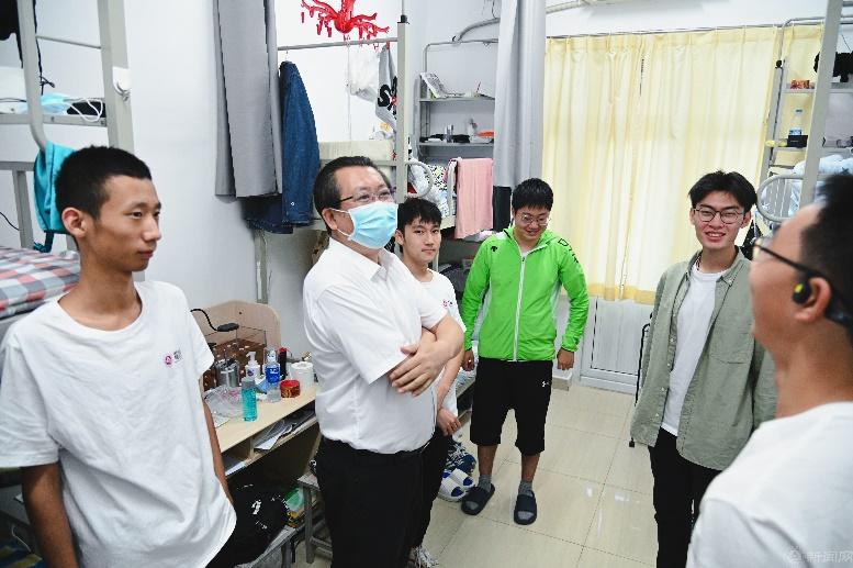 敲门行动,情暖到寝。9月14日,学校党委副书记、校长张立峰来到馨斋学生公寓,与同学们亲切交谈,他叮嘱要自觉做好个人防护,遵守好学校疫情防控要求,要遵守学生守则,不在宿舍吸烟、违规用电。他希望同学们坚持理想,志存高远,珍惜韶华,刻苦学习,做一个有德有才可堪大用的时代新人。