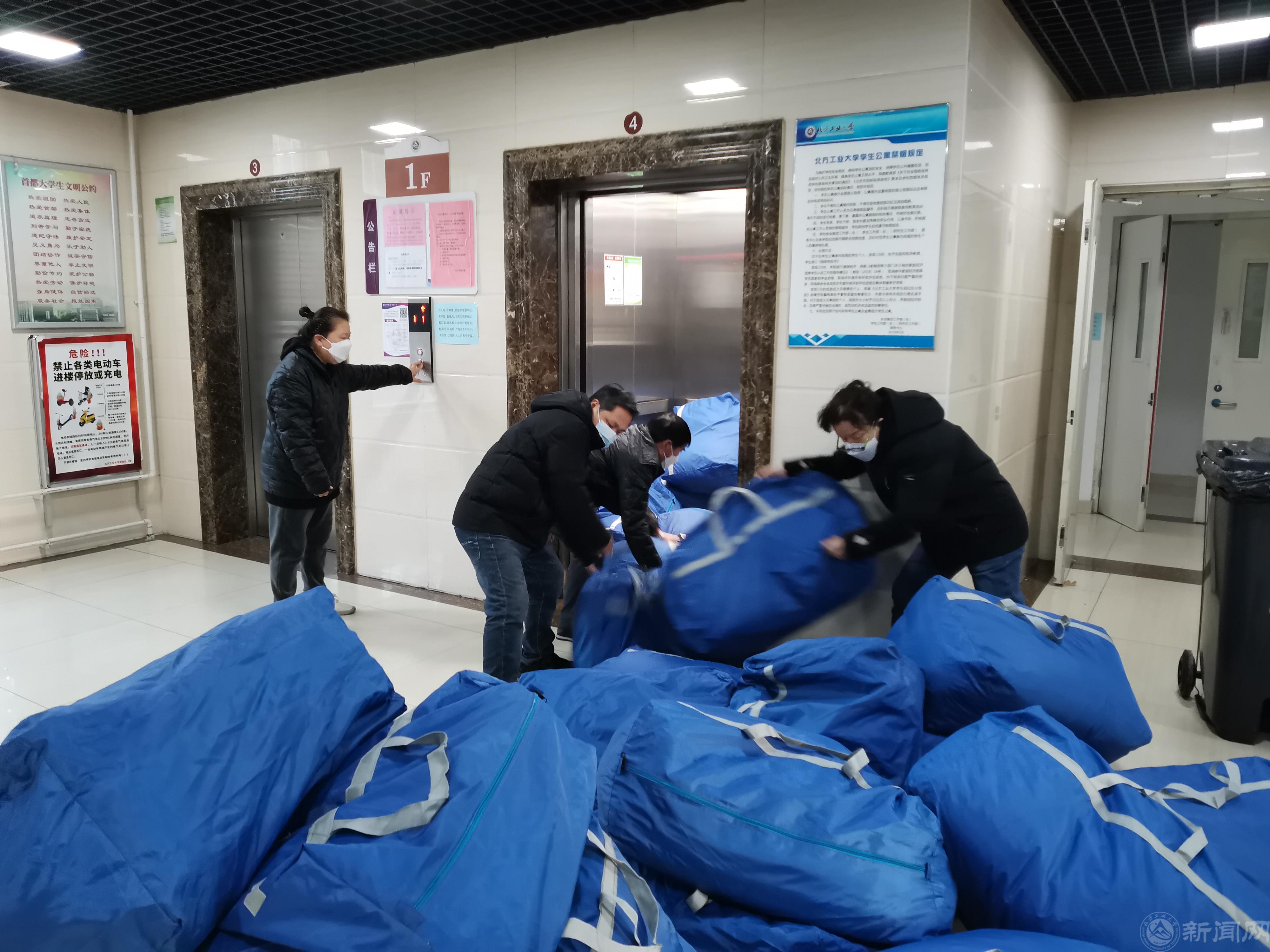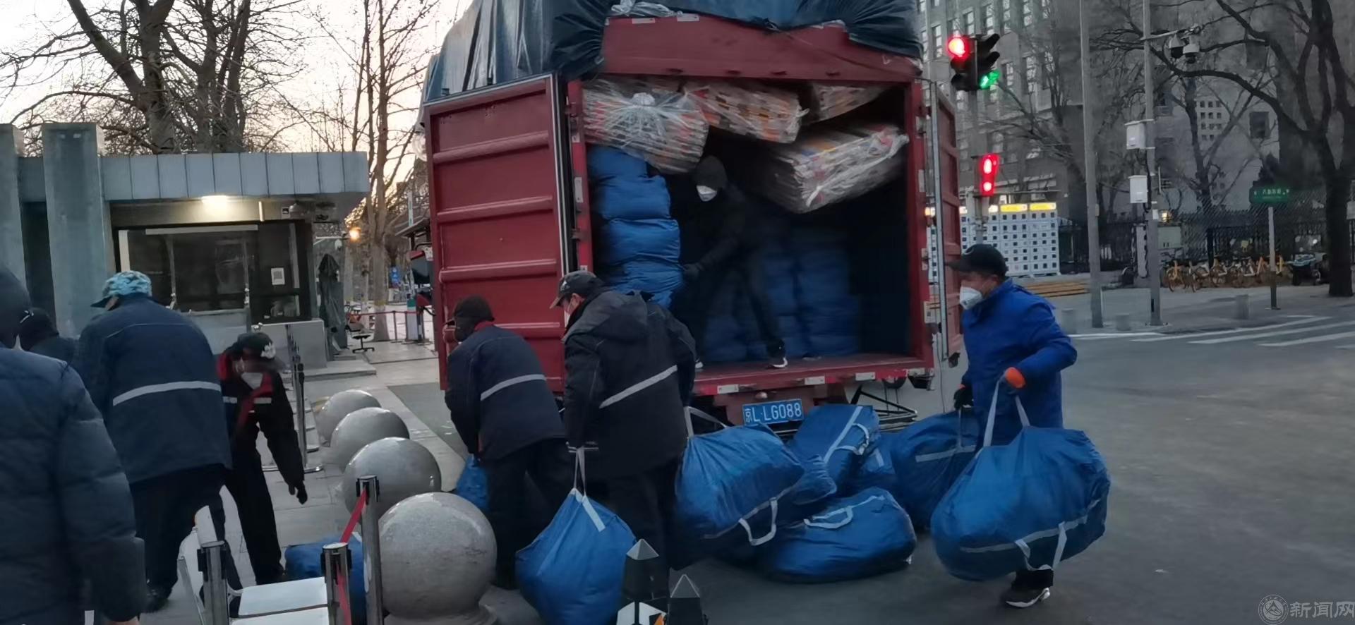绿化环卫服务部和学生公寓服务部清晨冒严寒搬卸卧具