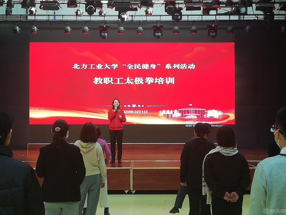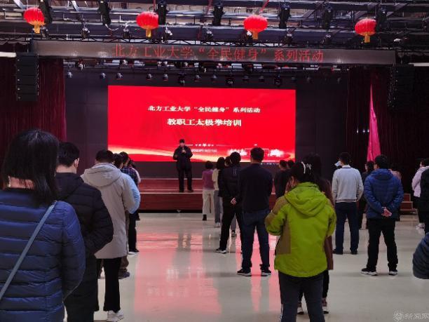 为贯彻落实习近平总书记关于体育的重要论述精神,推动全民健身活动深入开展,进一步丰富教职工业余文化体育生活,近日,由校工会举办的“全民健身”系列活动——太极拳培训在学生服务楼4层多功能厅正式启动。校工会常务副主席黄睿、副主席王侃,部分分工会主席以及各分工会骨干教师、学员近80人参加了本次活动。