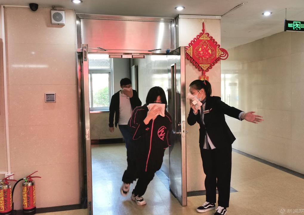 随着一阵急促的报警声,消防疏散演练正式开始。留学生和员工按照学习到的火场逃生疏散知识,采用弯腰、捂鼻、扶墙等方法从公寓疏散,做到了动作标准、行动迅速。演练紧张有序、效果良好。