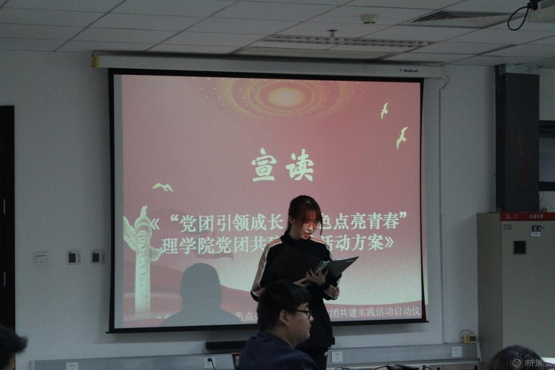 统计系本科党支部委员庞静雯宣读《“党团引领成长,红色点亮青春”理学院党团共建实践活动方案》,详细解读了各阶段的活动安排和工作任务。