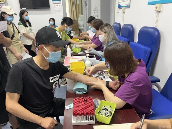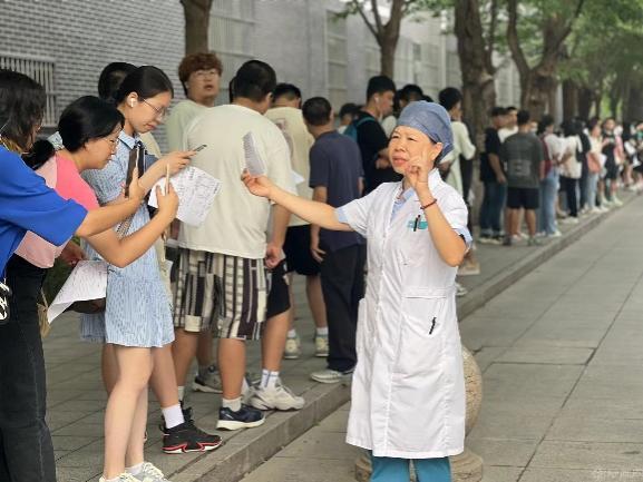 体检期间,校医院全体医护人员、校志愿者们在7点全体到达现场,体检工作顺利展开。医护人员严格按照体检规范操作,为新生完成了抽血化验、胸片(DR)、内、外科血压、视力、色觉、身高、体重以及非京籍学生麻风腮和乙脑疫苗接种等项目检查。本次体检分时段、分区域进行,学生志愿者现场维护秩序,最大限度减少了人员拥挤,保证新生体检有条不紊地进行。