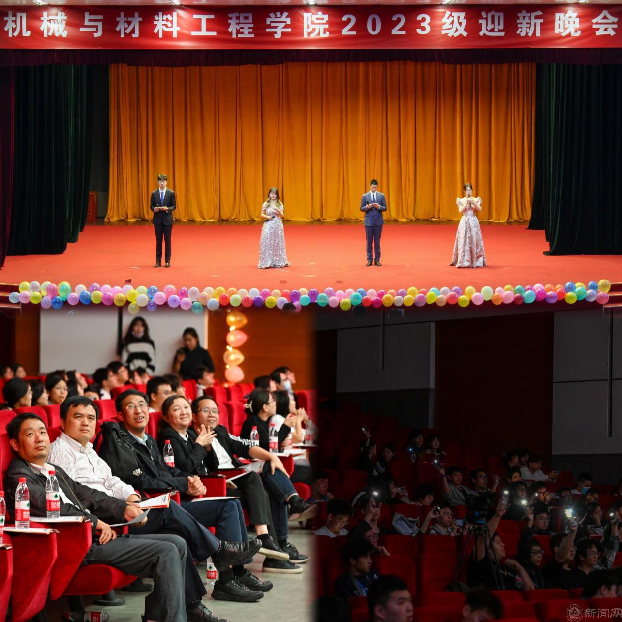 “新”光璀璨,“材”出精彩。10月8日晚,“机械与材料工程学院2023级新生迎新晚会”在图书馆报告厅隆重举行。机材学院院长刘峰斌,副院长王海波、刘东,党委副书记石卉,全体辅导员、班导师及2023级新生一起观看。