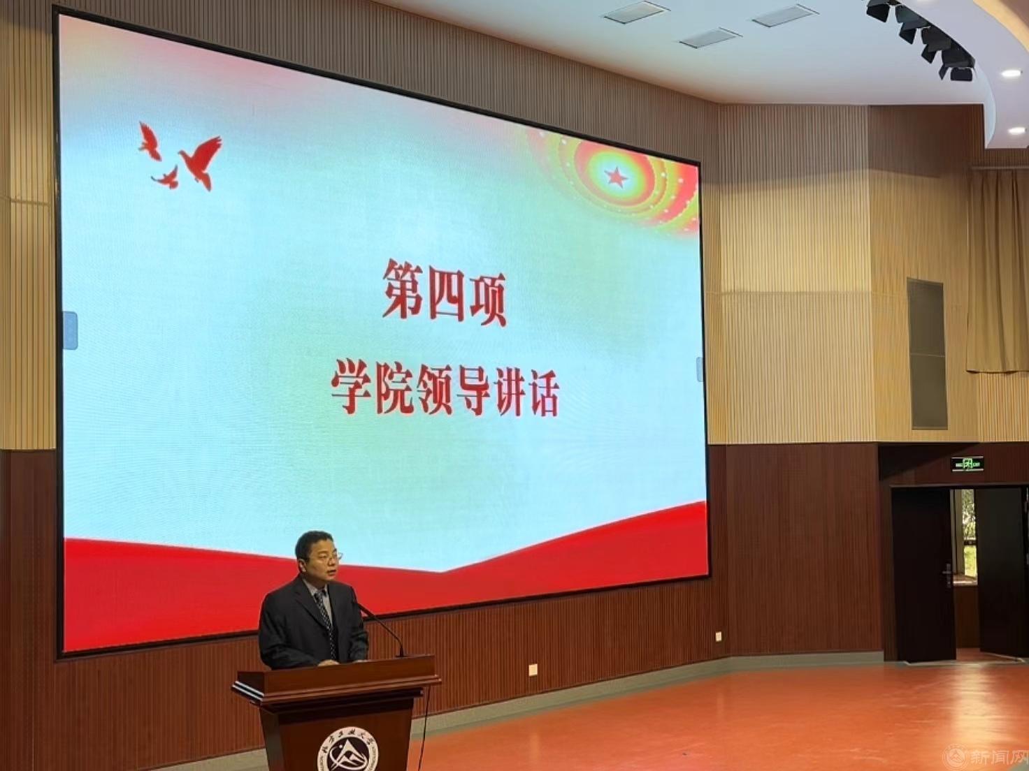 王伟宾代表学院党委讲话。他对学院第二次团员代表大会的召开表示祝贺,对学院过去五年的团委工作表示肯定,并向学院广大青年团员、团干部提出三点希望: