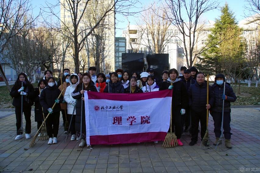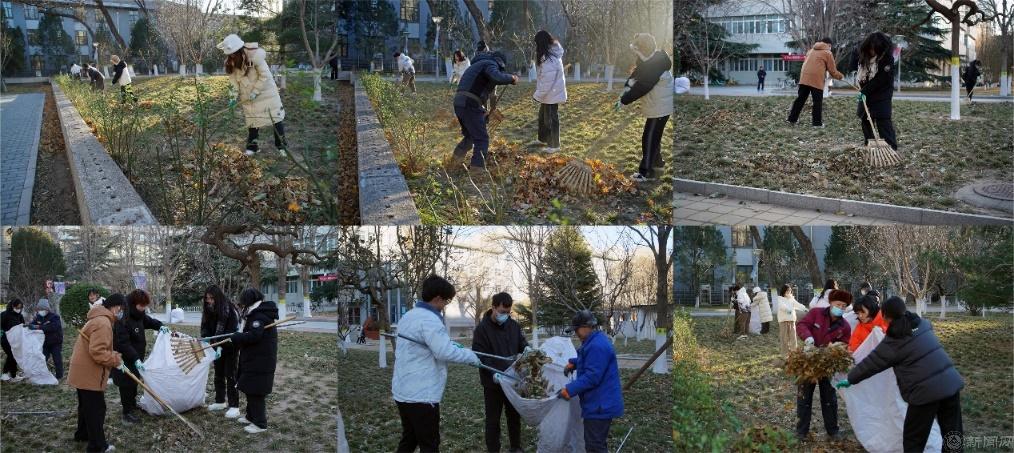 寒冬扫落叶,劳育润我心——理学院和绿化环卫服务部开展清扫校园落叶活动