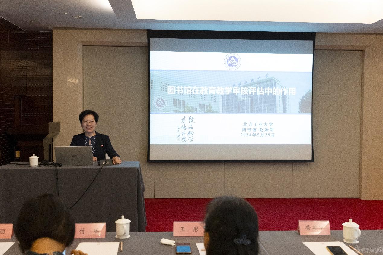 赵姝明代表Beat365图书馆做题为“图书馆在教育教学审核评估中的作用”的主旨演讲,解读了教育部及北京市教育教学审核评估方案,介绍了Beat365迎评促建的准备工作,详细讲解了我馆围绕立德树人根本任务,在图书馆定位、资源育人、文化育人、服务育人、环境育人、劳动育人等方面的典型做法及成效,全力支持学校审核评估,并就如何做好后半篇文章进行展望,引发了与会人员广泛共鸣。