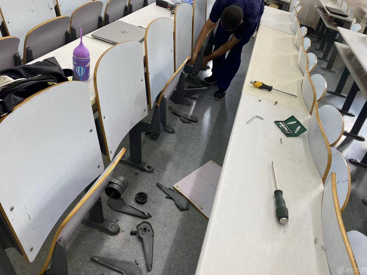 为做好迎新工作,动力修缮部门前期做了充分的准备。专业技术人员提前检修迎新宿舍、公共教室、空调、开水器、浴室等设备设施。维修师傅电话保持24小时畅通,保障各类设备安全稳定运转。迎新期间,检修迎新宿舍659间,教室50间,主路及车位标线1800余延米;对二次供水/中水、空调制冷、开水器、净水机、浴室设施、电力设施等进行全面检修、清扫、保养,确保供水、供电、供冷系统设备运行良好;对浴室洗浴区、更衣区、卫生区进行全方位无死角大扫除、消杀,为师生提供良好的洗浴环境。