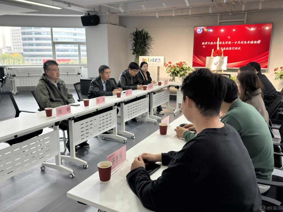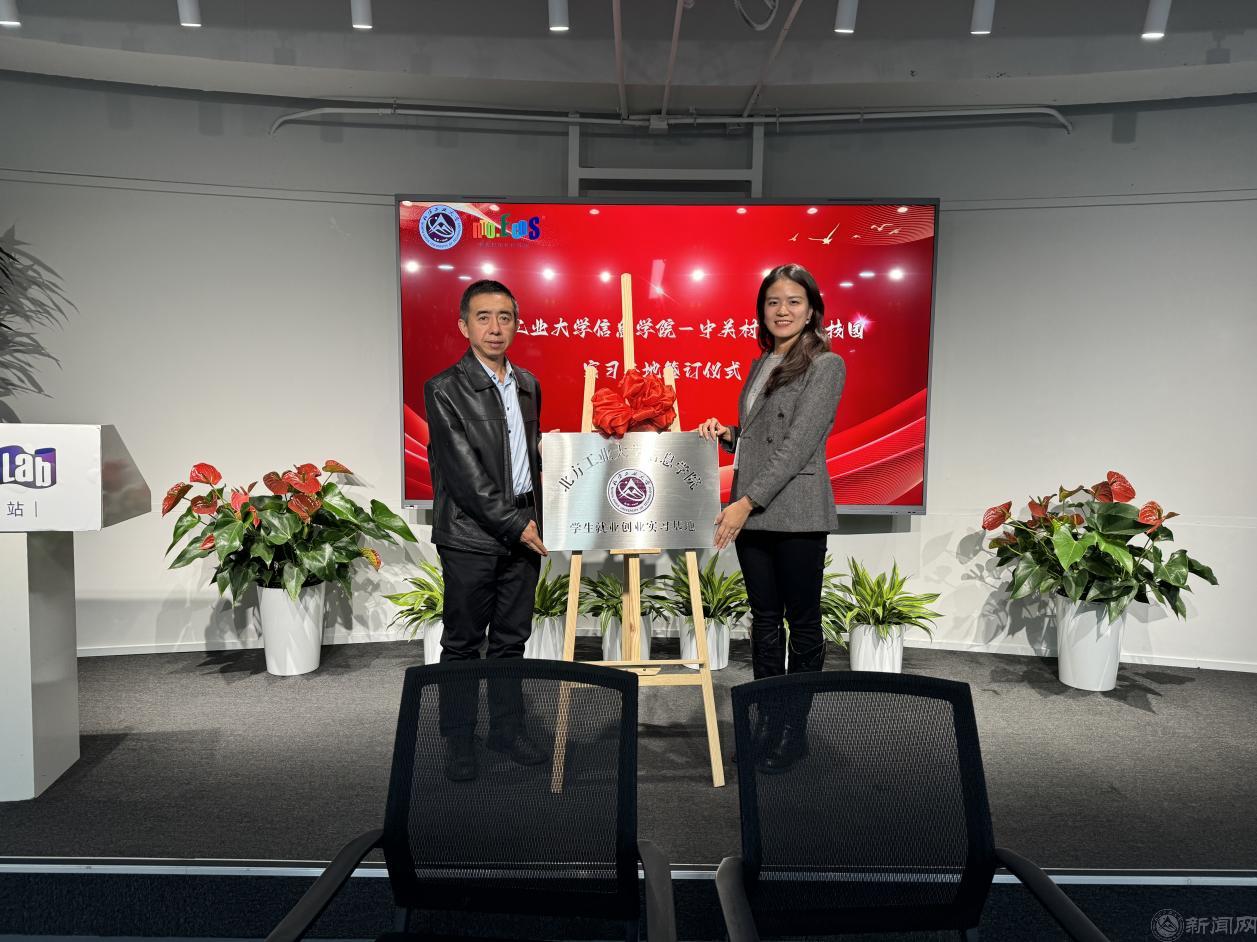 为了加强校企合作,深化产教融合,推动校企协同发展。11月11日,信息学院与中关村东升科技园达成学生就业创业实习研究基地合作协议,并在北京市海淀区中关村东升科技园举行了揭牌仪式。信息学院院长马礼、计算机系主任李源、人工智能系主任赵卓峰、辅导员魏静、田庆玥受邀参加活动。东升大厦i站科创服务总经理刘雨晨、产业孵化总经理姚斌等园区领导、北京超智能科科技有限公司负责人杨建刚参加签约揭牌仪式。