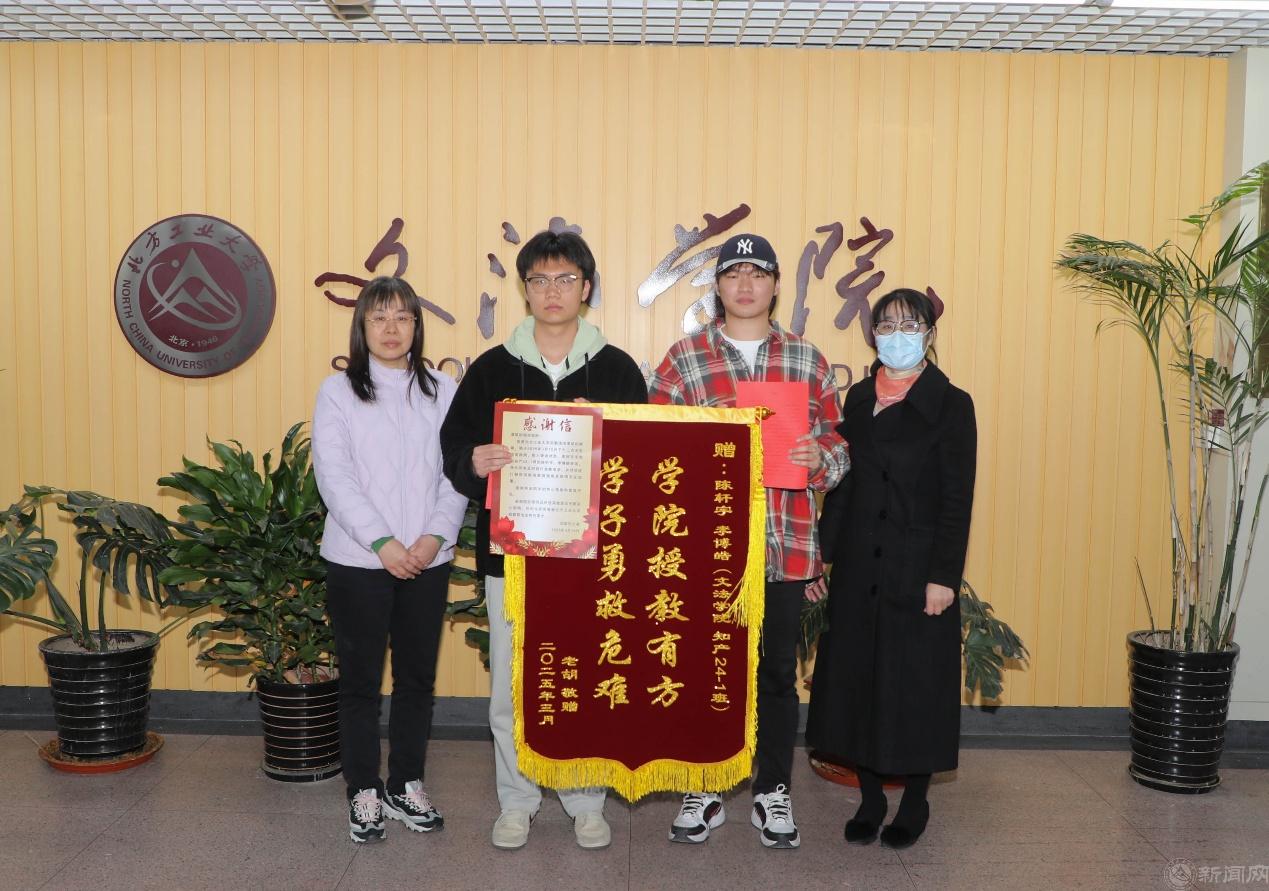 3月18日,该名工作人员家属及其所属的北京山石智慧物业管理有限公司经理李毅到校为两名同学赠送锦旗和感谢信,并在瀚学楼710与两名同学进行座谈交流。学校后勤基建处副处长尉峰、学工部副部长赵帅、后勤服务中心李海涛,文法学院党委书记袁凤识、学生辅导员、班导师参加座谈会。座谈会由文法学院党委副书记邝洪波主持。