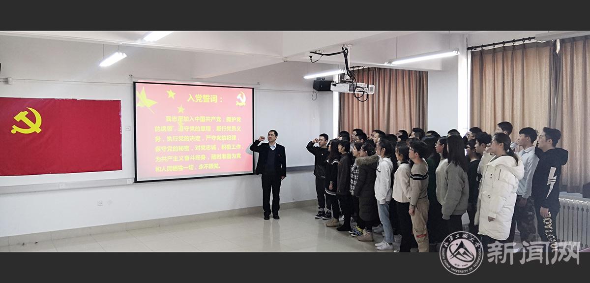 宣誓仪式结束后,张少波代表学院党委对所有新党员进行了集体谈话,他要求大家要不忘初心,牢记使命,进一步坚定理想信念,用习近平新时代中国特色社会主义思想统一思想和行动,任何时候都同党中央保持高度一致;要加强理论学习,不断提高政治理论素养,时刻把入党誓词牢记在心并付诸行动,确保在思想上和行动上真正入党;要勇于担当、发挥作用,时时处处以一名党员的标准严格要求自己,在理论学习、党风廉政建设、学风班风建设等各个方面充分发挥党员的先锋作用,引领和带动身边的同学共同进步。