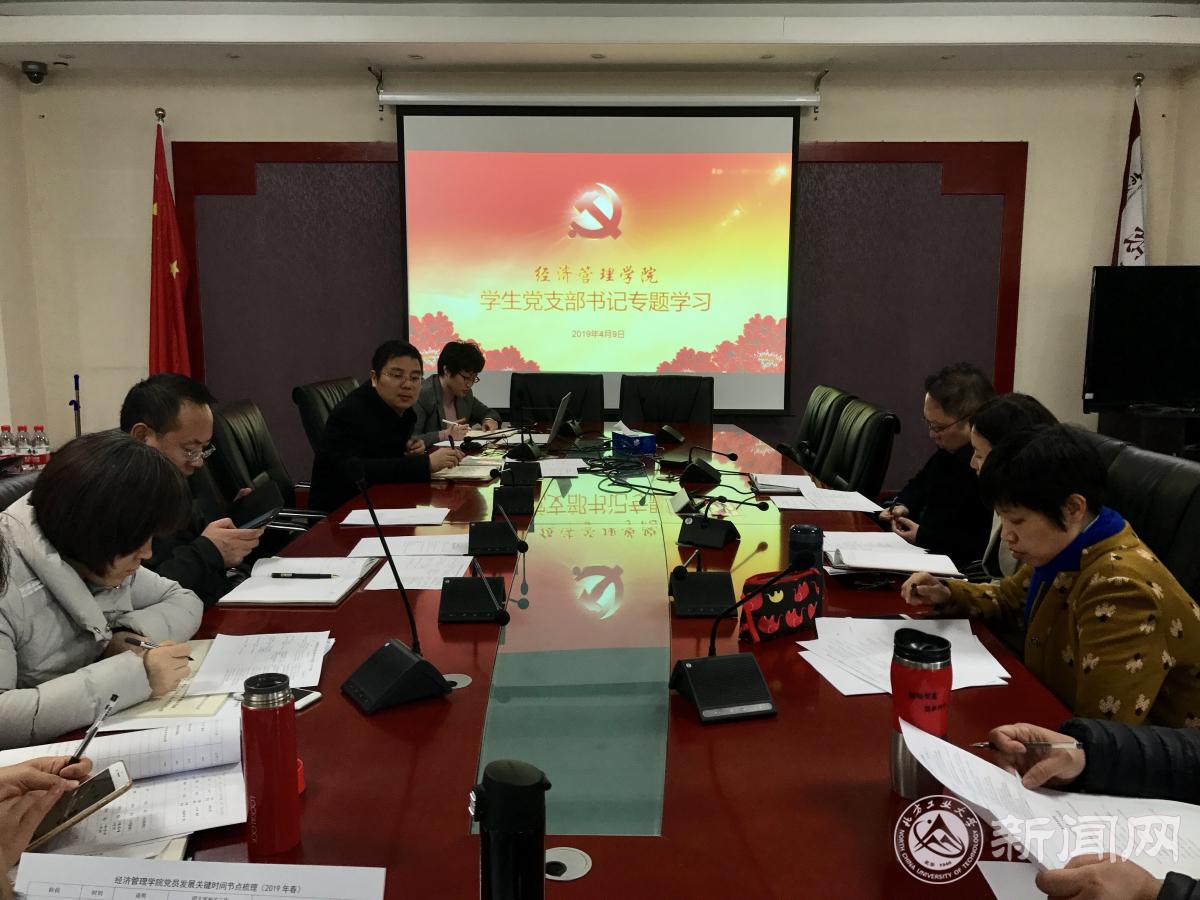 2019年4月9日下午,经济管理学院在励学楼201会议室开展学生党支部书记专题学习,学院党委书记王伟宾、党委副书记赵洁以及各个学生党支部书记参加了本次专题学习,本次会议由王伟宾书记主持召开。