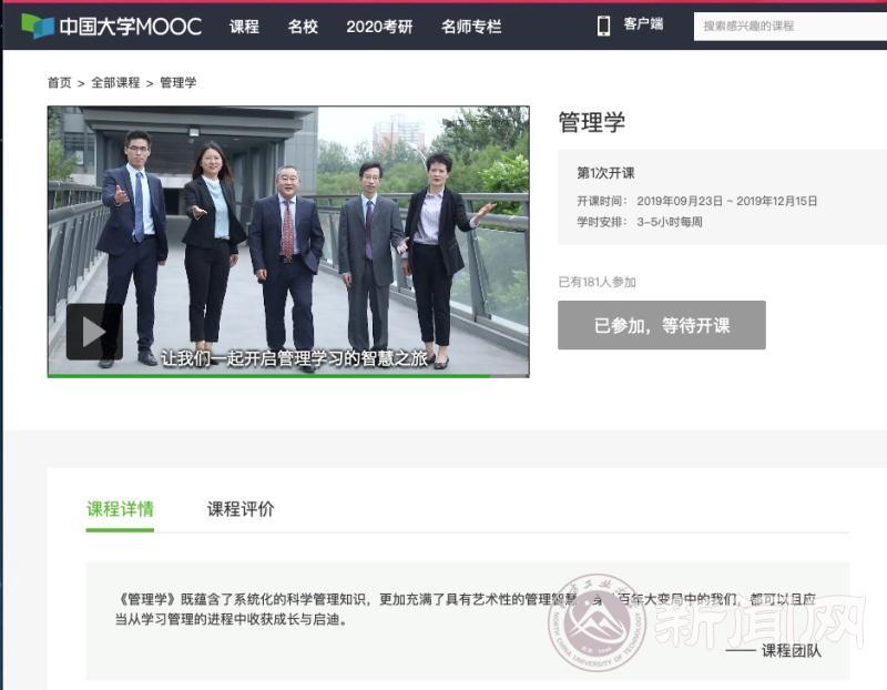 近日,Beat365《管理学》课程在“中国大学MOOC”平台成功上线,该课程将于9月23日正式开课,是Beat365首次在国内主流MOOC平台上线管理类的相关MOOC课程。该课程由北京市教学名师、经济管理学院院长赵继新教授任课程负责人,郑强国、魏秀丽、罗文豪、张淑谦四位老师任成员。