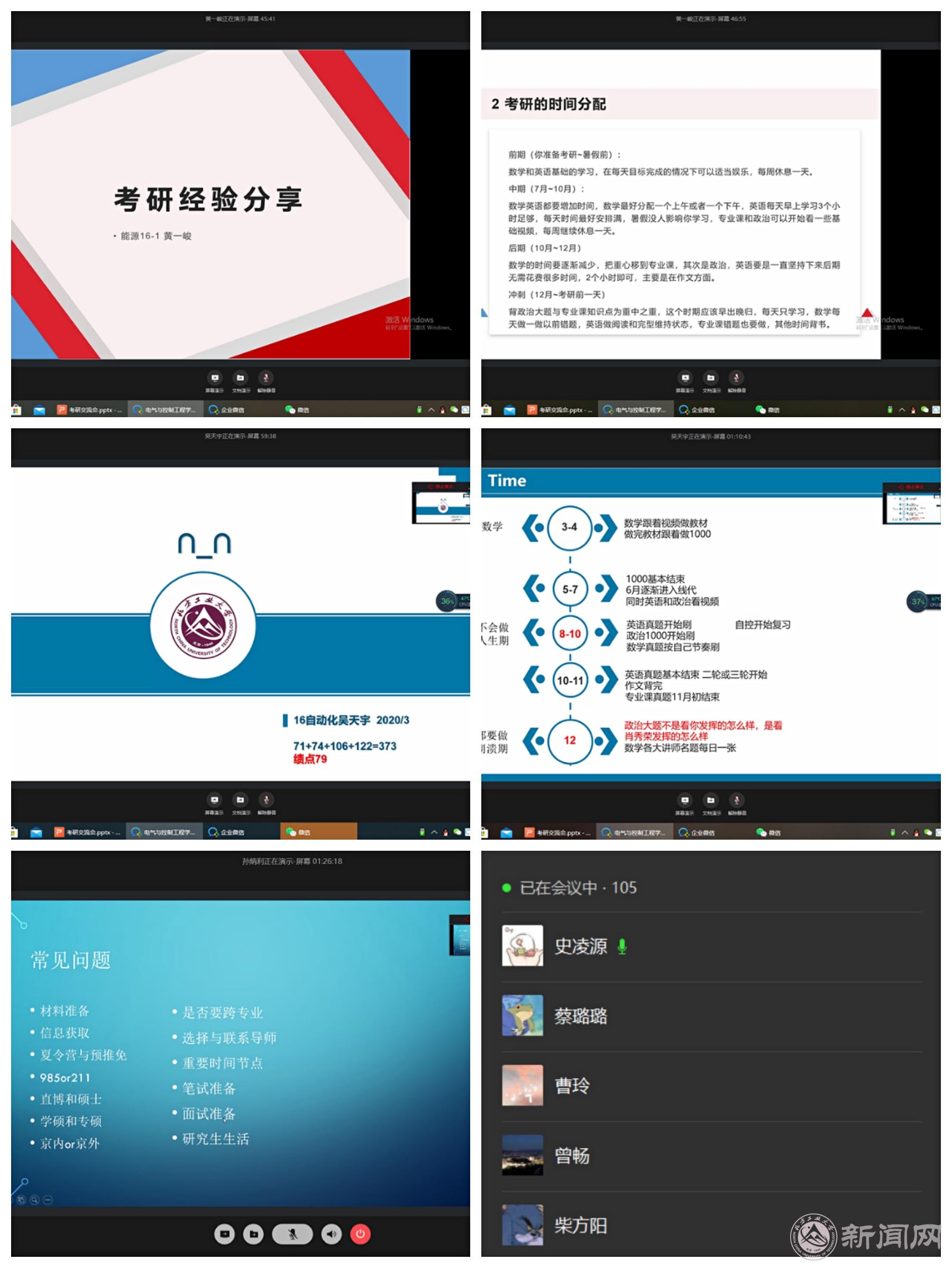 3月21日下午,电控学院通过企业微信举办了2017级线上考研动员暨经验交流会。16级各专业今年考研成绩突出的史凌源、臧益果、黄一俊、吴天宇以及成功保研的孙炳利等同学主讲。五位同学根据自身的经验,分别向17级的各位同学介绍了如何系统地进行考研备战,为大家“传经送宝”。会议由辅导员王磊老师主持。