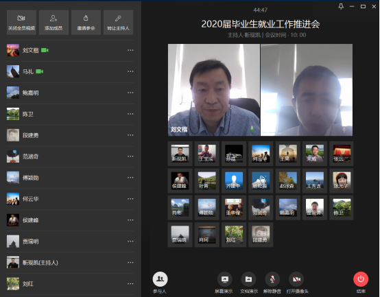 为切实推进2020届毕业生就业工作,进一步落实学校关于做好2020届毕业生就业工作的要求,4月17日上午,信息学院召开2020届毕业生就业工作推进视频会议。学院党委书记刘文楷、院长马礼、副院长宋威、各系主任、2020届毕业班班导师及辅导员参会。会议由学院党委副书记陈卫主持。