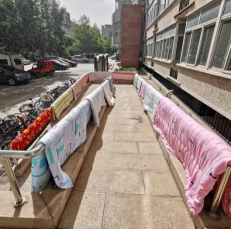 在辅导员和志愿者的努力下,一床床被褥在阳光下晾晒。这场晒被大行动,让同学们非常感动,也得到了同学和家长们的热情回应,在朋友圈、微信群里发表自己的感想,感谢辅导员的无微的付出。
