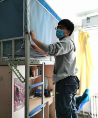 “阳台上有一盆小绿萝,如果还活着,辛苦辅导员浇浇水”,“如果有发霉的食物,帮忙扔一下”“被罩枕套拆下来晒”......从晒被子到收被子,从楼上宿舍到楼下花园栅栏,参与工作的老师和同学们都是一身灰,一头汗。
