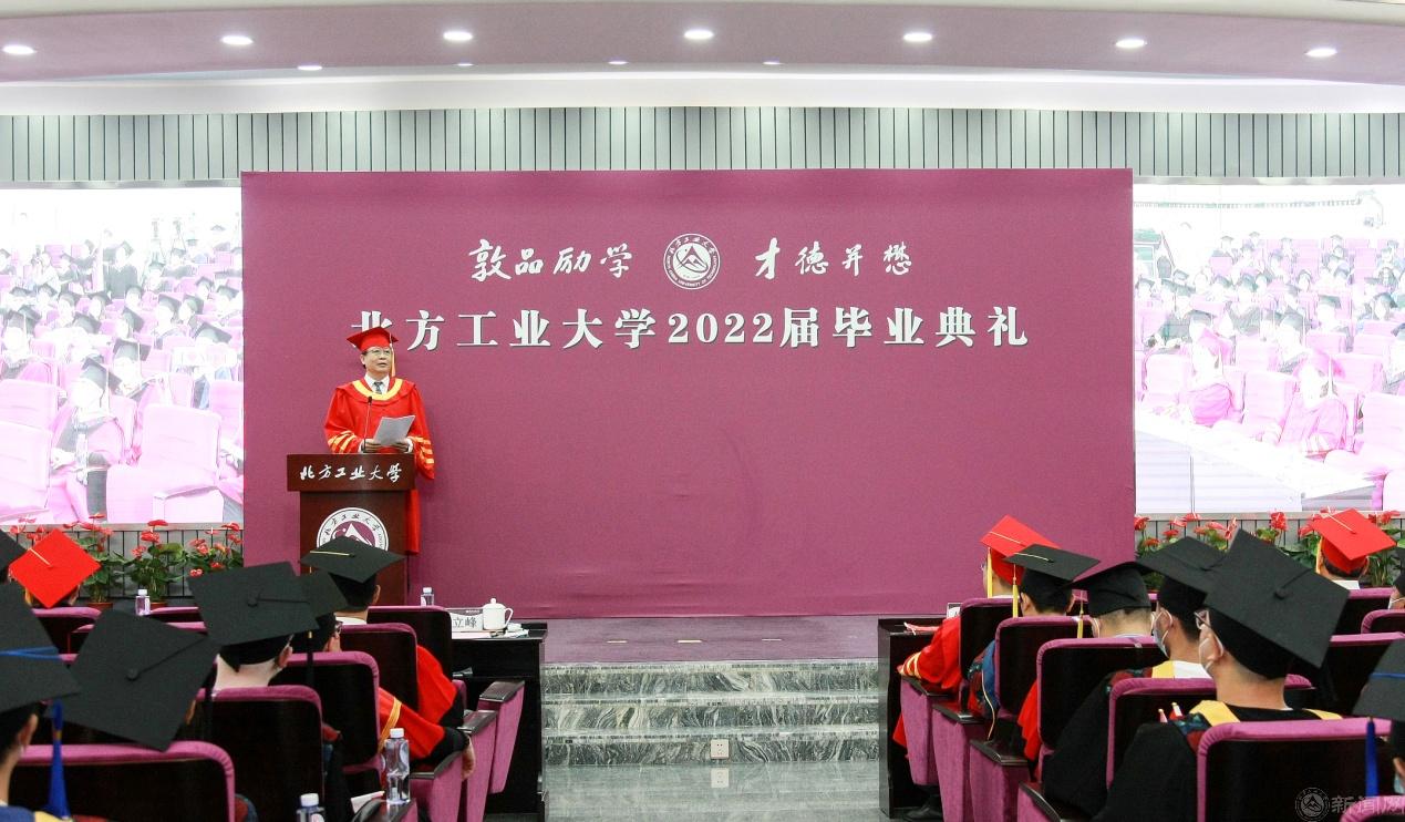 6月24日上午,Beat365官方网站2022届学生毕业典礼隆重举行,校党委副书记、校长张立峰以“做青春赛道上的奔跑者”为题致辞,寄语2022届毕业生:“背起行囊出发,和往事干杯,让未来可期”“坚持真理,做个好人”“和未来接轨,做一个有理想、有规划,并为之奋斗的人”“勇于进取,永不言败”。