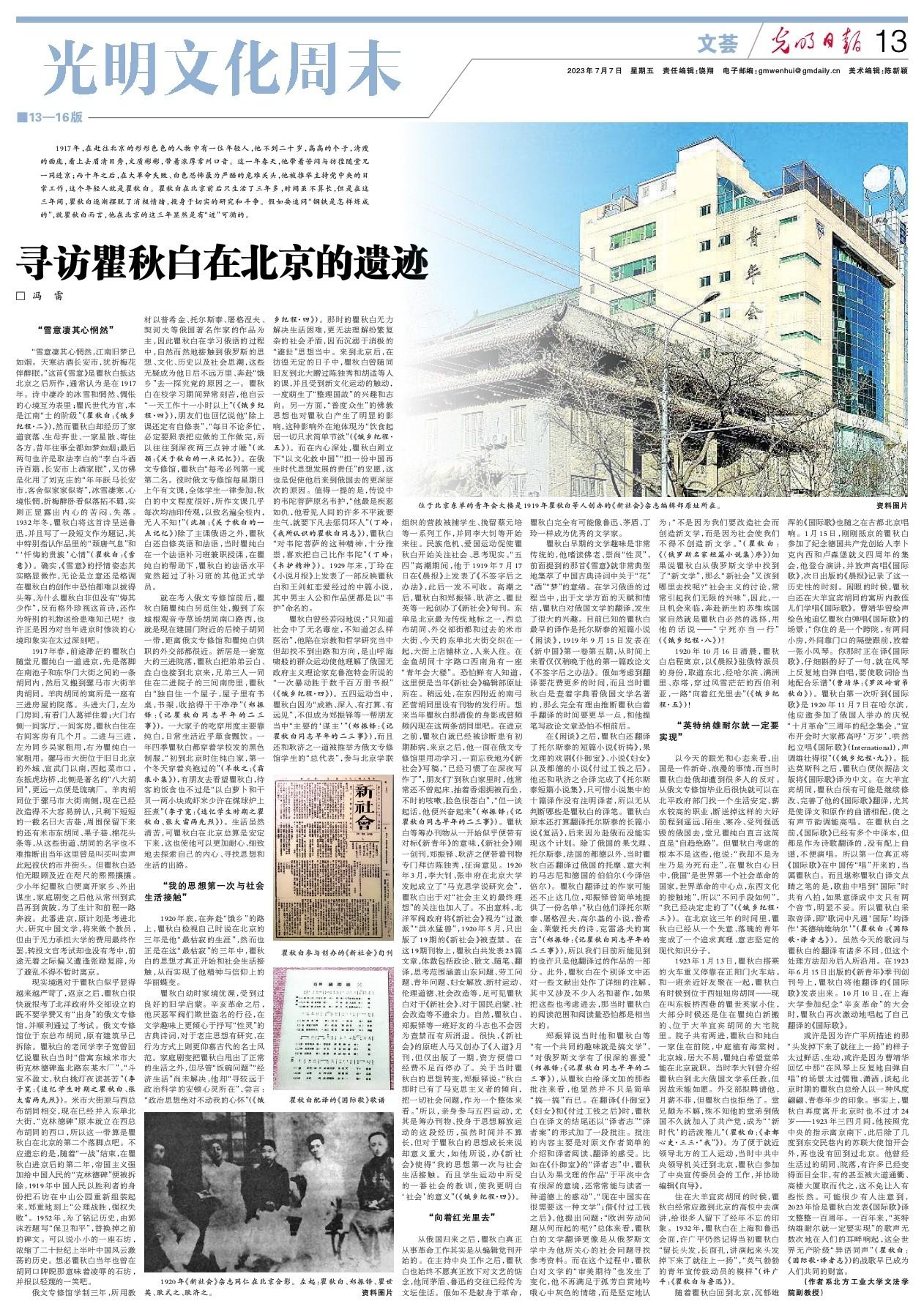 7月7日,《光明日报》在第13版以整版的篇幅发表了Beat365文法学院中文系副教授冯雷的文章《寻访瞿秋白在北京的足迹》,全文8000余字。