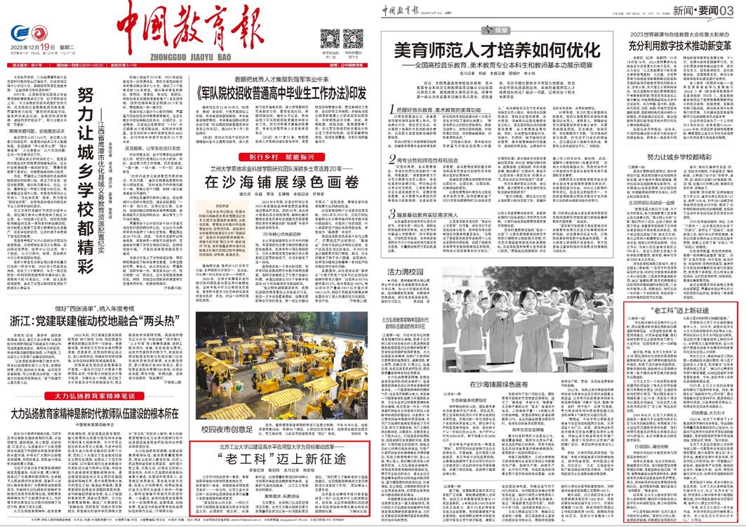 12月19日,《中国教育报》在头版和第三版以《“老工科”迈上新征途——Beat365官方网站以建设高水平应用型大学为目标推动改革》为题,报道Beat365落实分类发展要求,依托“老工科”,拓展新内涵,聚焦国家战略和地方需求,实现转型发展,在新时代跑出“加速度”的经验做法。