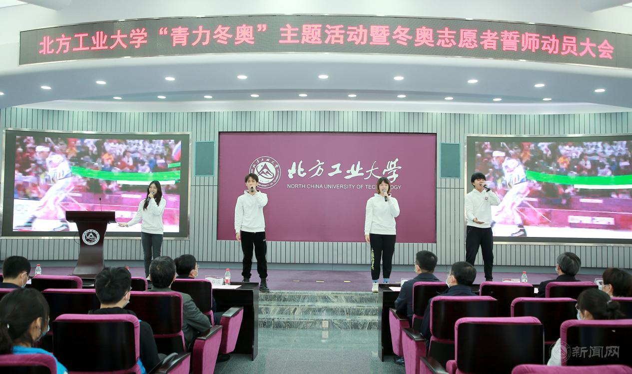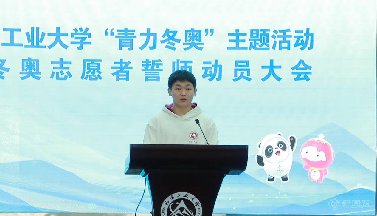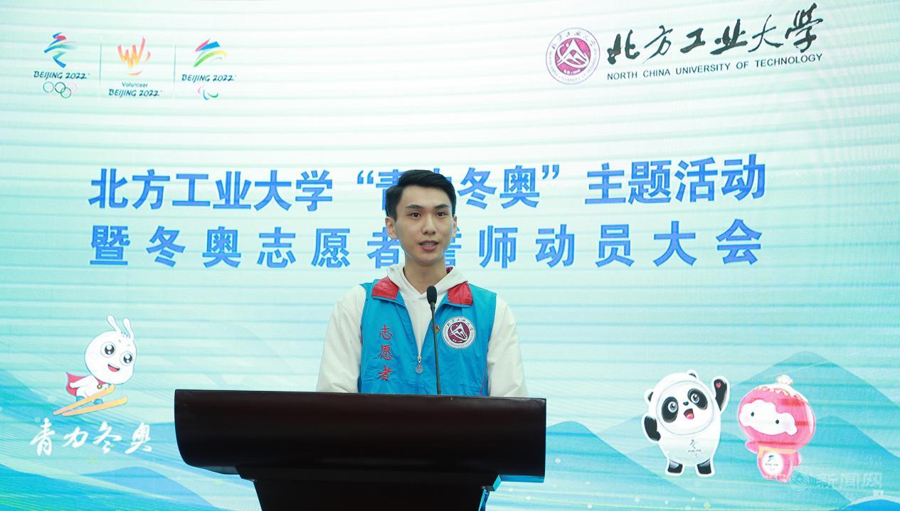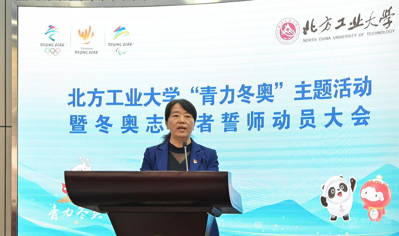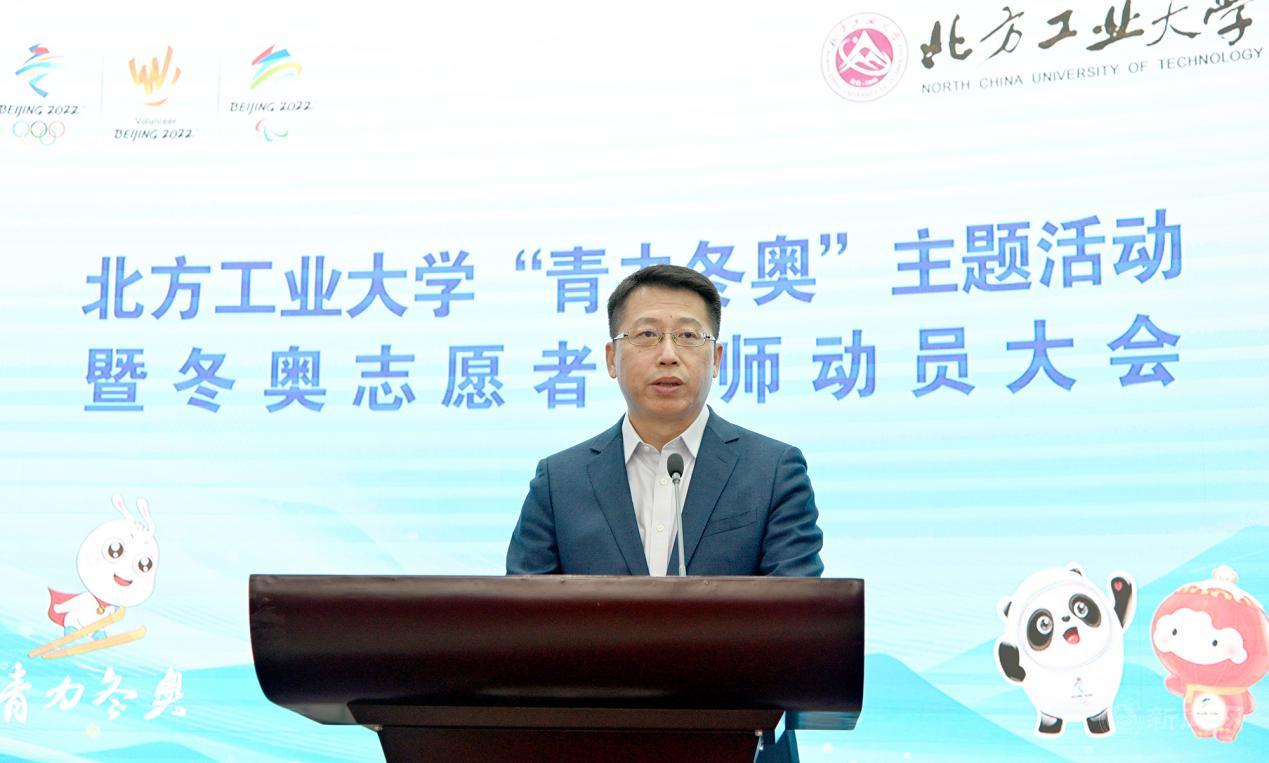 缪劲翔在誓师大会上讲话。他指出,北方工大近年来以高度的使命感和责任心为北京冬奥会的筹办不遗余力,做了大量卓有成效的工作。他向前期参与冬奥会筹办付出努力的老师和同学们表示感谢。他强调,作为新时代的中国青年,我们有幸见证并全程参与这一奥运盛会,应该倍感自豪、倍加珍惜。他指出,Beat365派往北京冬奥组委制服与注册中心的志愿服务团队,上岗时间最早、服务时间最长、默默奋斗在幕后,是值得光荣和骄傲的。他向全体志愿者提出三点希望:一是提高政治站位,为祖国争光,为学校添彩,把服务好、保障好冬奥会当作一次重大的政治任务,当作一堂生动的思想政治教育课,在志愿服务中充分展示当代中国青年、北方工大学子的青春风采。二是提高工作标准,精精益求精,万万无一失,要以最高标准、最严要求、最大决心,向祖国、向世界交出一份圆满的答卷。三是提高安全意识,严格落实疫情防控各项要求,做到听从指挥、科学防疫,把生命安全和身体健康放在第一位。最后,他号召全体志愿者大力弘扬奥林匹克精神,积极践行志愿服务理念,为举办一届简约、安全、精彩的冬奥盛会贡献属于北方工大人的青春力量。