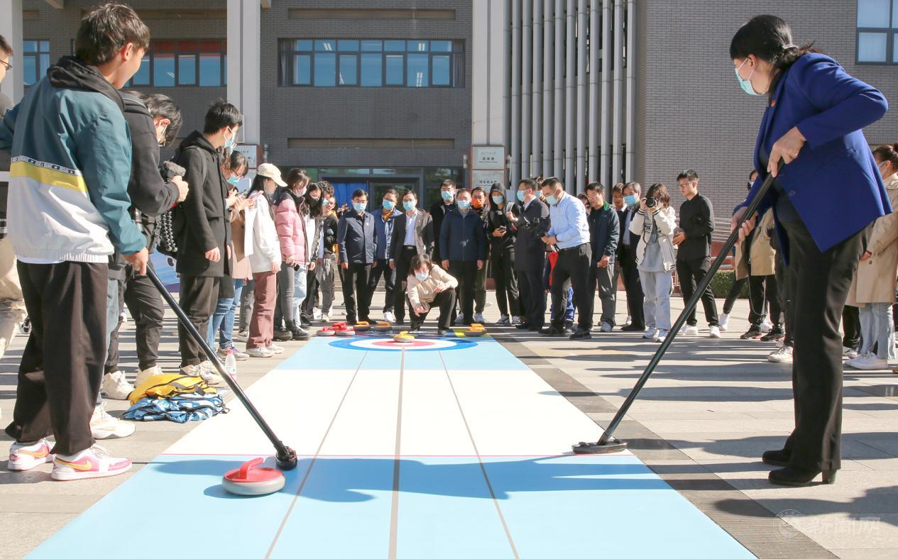 当天中午,学校还在毓秀广场举办了冰雪运动项目现场体验活动。师生们通过参与旱地冰壶、冰蹴球、冰球射门等运动项目的体验,进一步加深了对冬奥竞赛项目的了解,进一步增强了师生们支持冬奥、参与冬奥、服务冬奥的热情和自觉。
