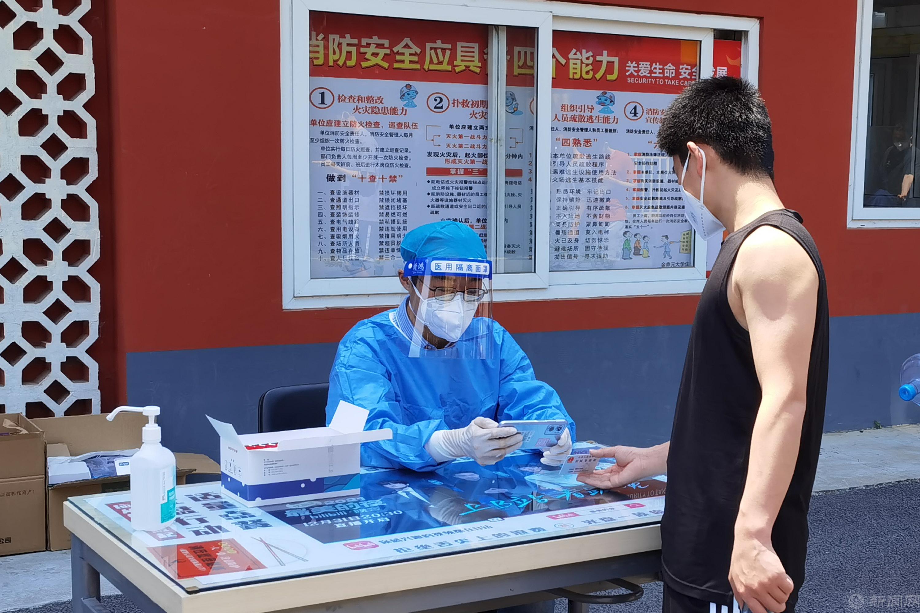 吕淑庆参与了学校家属区的核酸检测工作,她面对的是每天900人左右的检测任务。核酸采样工作一般是8点半到10点半,因为人多经常会顺延到12点多。吕淑庆说,她主要负责测温、扫码、身份信息录入等工作,每天要工作两到三个小时,工作时全然感觉不到累,但一上午的工作结束后,疲惫感会慢慢袭来。然而现场检测结束后,她的工作并没有结束。志愿者们还要继续完成核实身份信息的工作,这关系到学校师生的安全健康,更需要认真细致,容不得一点差错。