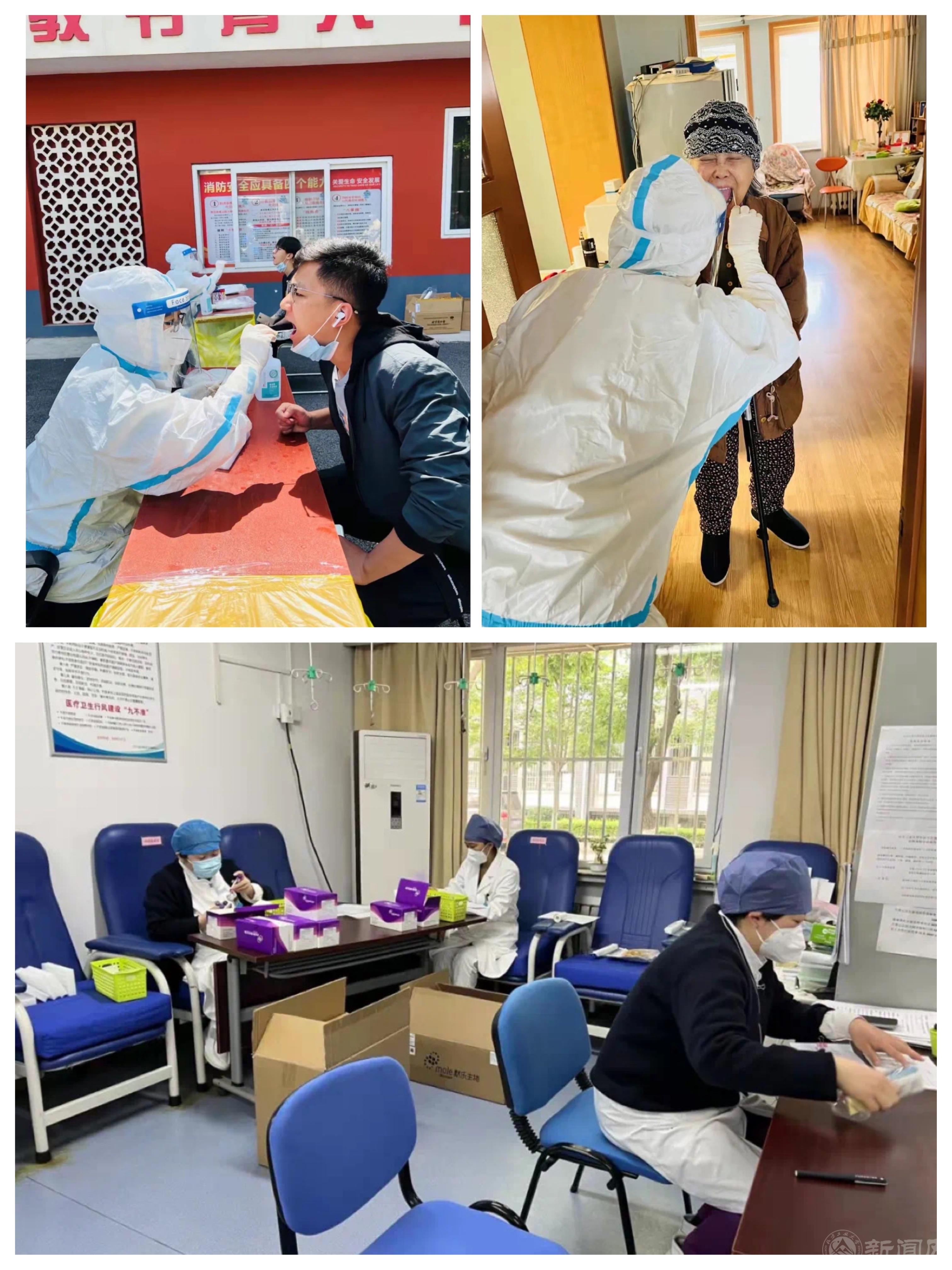 校医院克服人员不足的困难,全程无休为师生核酸检测,并对家属区行动不便的老人提供上门采样服务。