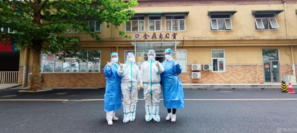 周竟医生多次带队上门为居家健康观察的居民提供采样服务。学校的家属楼没有电梯,需要一层层爬楼梯,挨家挨户敲门,加上穿着不透气的防护服,汗水一会儿就会湿透全身衣服。在摘下口罩的瞬间,虽然脸上写满了疲惫,但从他们的眼神中看到的是光彩和成就感。