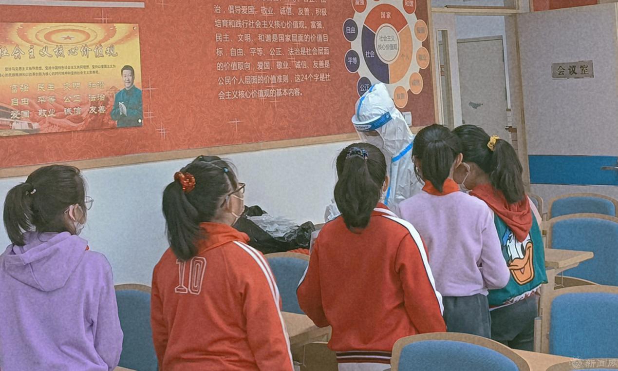 黎蕊的工作主要协助做好学校师生的核酸检测工作,当时疫情还没有十分严峻,全学校只有她和校医两个人为师生做核酸。校医负责采样,她负责维持秩序和引导,高峰的时候一天要为800到1200人进行核酸检测,从早上8点要一直忙到下午2点。黎蕊说,由于防护服密闭性强,天冷了冰凉,天热了又一身汗,穿在身上的感觉很难受,现在看到穿着防护服工作的医护人员,都十分理解他们的辛劳。