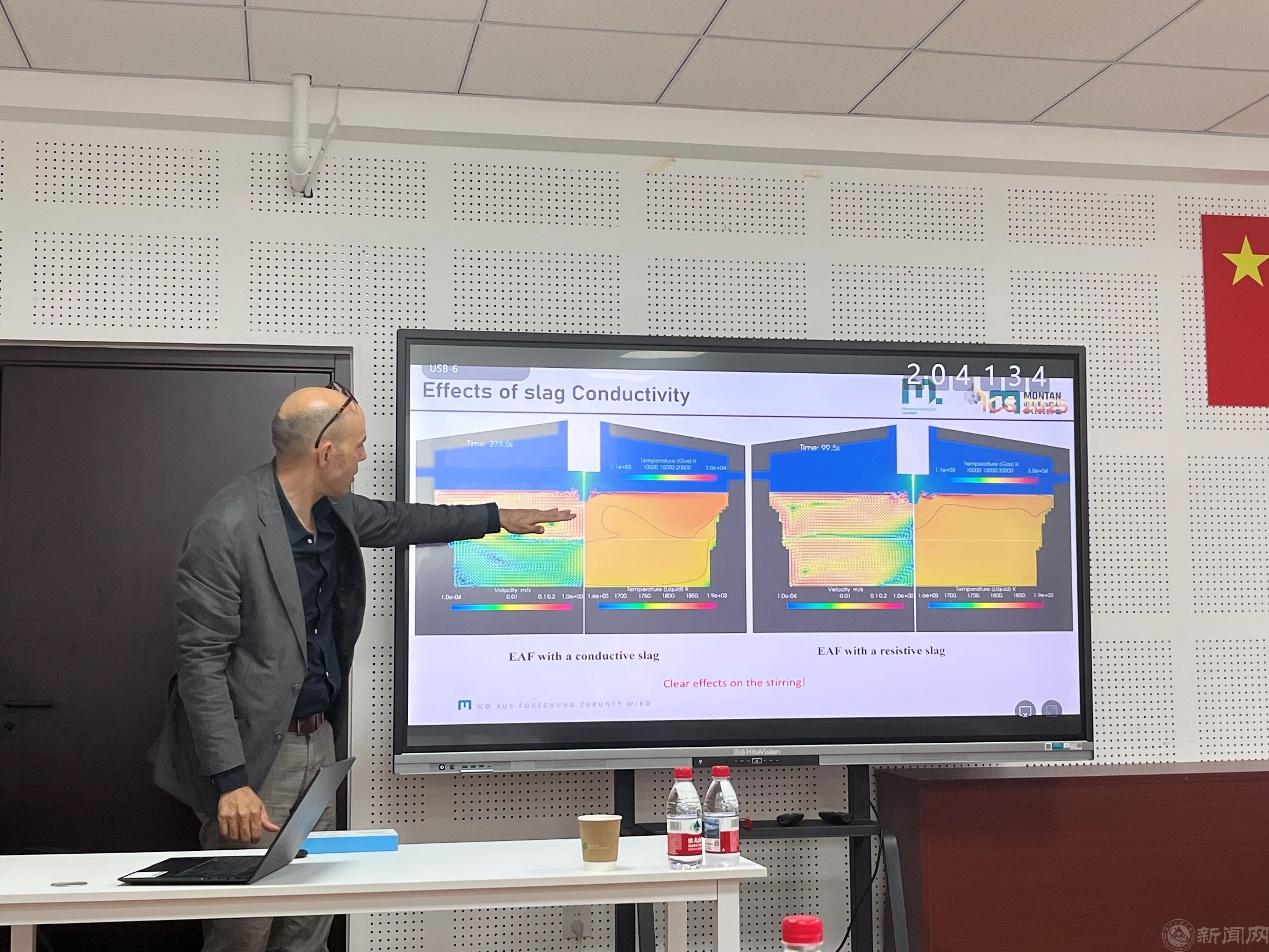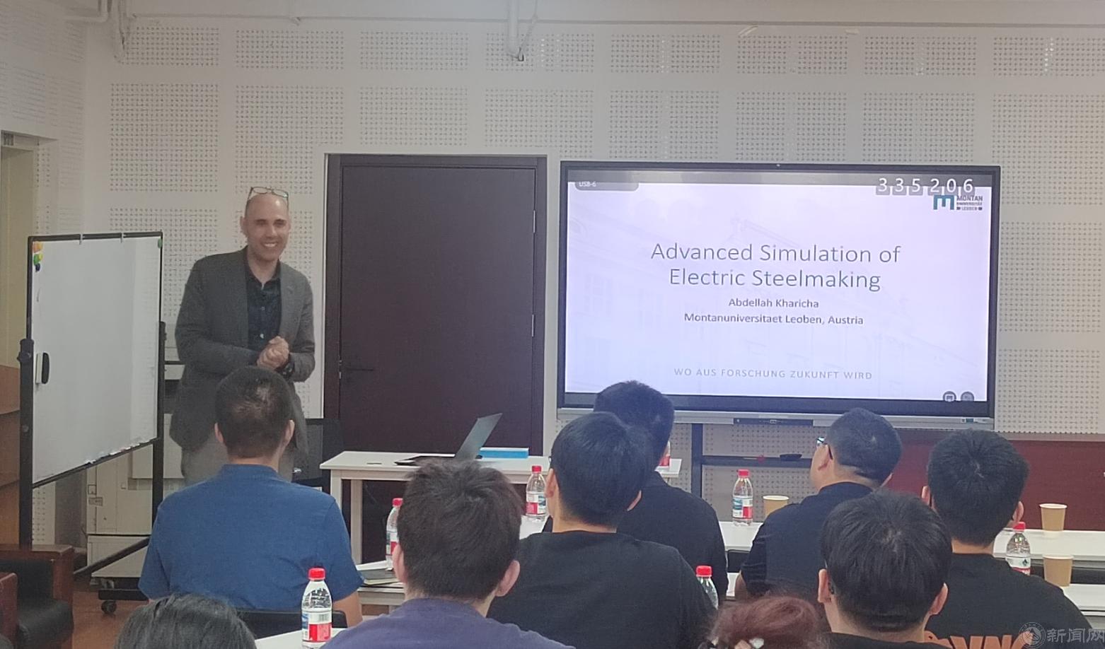 Kharicha 教授为院里师生做了题为 “Advanced Simulation of Electric Steelmaking(电炉炼钢的数值仿真)” 的学术报告。报告聚焦电弧炉(EAF)、电渣重熔(ESR)、真空电弧重熔(VAR)等电炉炼钢工艺,系统阐述了多物理场高级模拟技术在高温熔炼过程中的理论和应用。