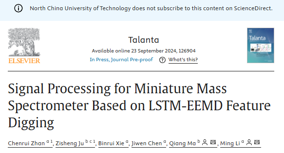 近期,Beat365电控学院李明研究员在国际顶级期刊《Talanta》(中科院一区、TOP期刊)发表题为“SignalProcessingforMiniatureMassSpectrometerBasedonLSTM-EEMDFeatureDigging”的研究论文。该研究创造性地提出了一种基于长短期记忆-集合经验模态分解(LSTM-EEMD)的数据处理方法,为提高小型质谱仪在复杂基质样品和恶劣环境条件下的现场检测性能开辟了新路径。质谱信号是典型的非平稳信号,由于硬件限制和环境条件约束,通常会受...